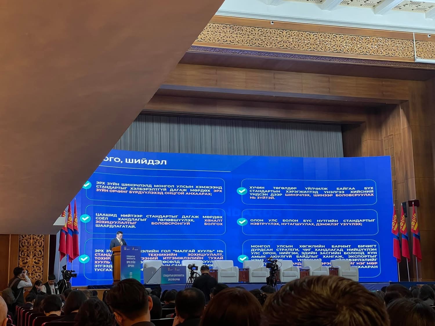🔹Энэ хүрээнд Монгол Улсад хэрэгжиж буй салбар бүрийн стандартуудын өнөөгийн нөхцөл байдал, цаашдын хэрэгцээ, шаардлага, олон улсын жишигт нийцүүлэх зэрэг асуудлыг хэлэлцэн нэгдсэн шийдэлд хүрэх зорилгоор “СТАНДАРТЫН ХЭРЭГЖИЛТ БА ЭРХ ЗҮЙН ОРЧИН” нэгдсэн хуралдааныг зохион байгуулж байна.