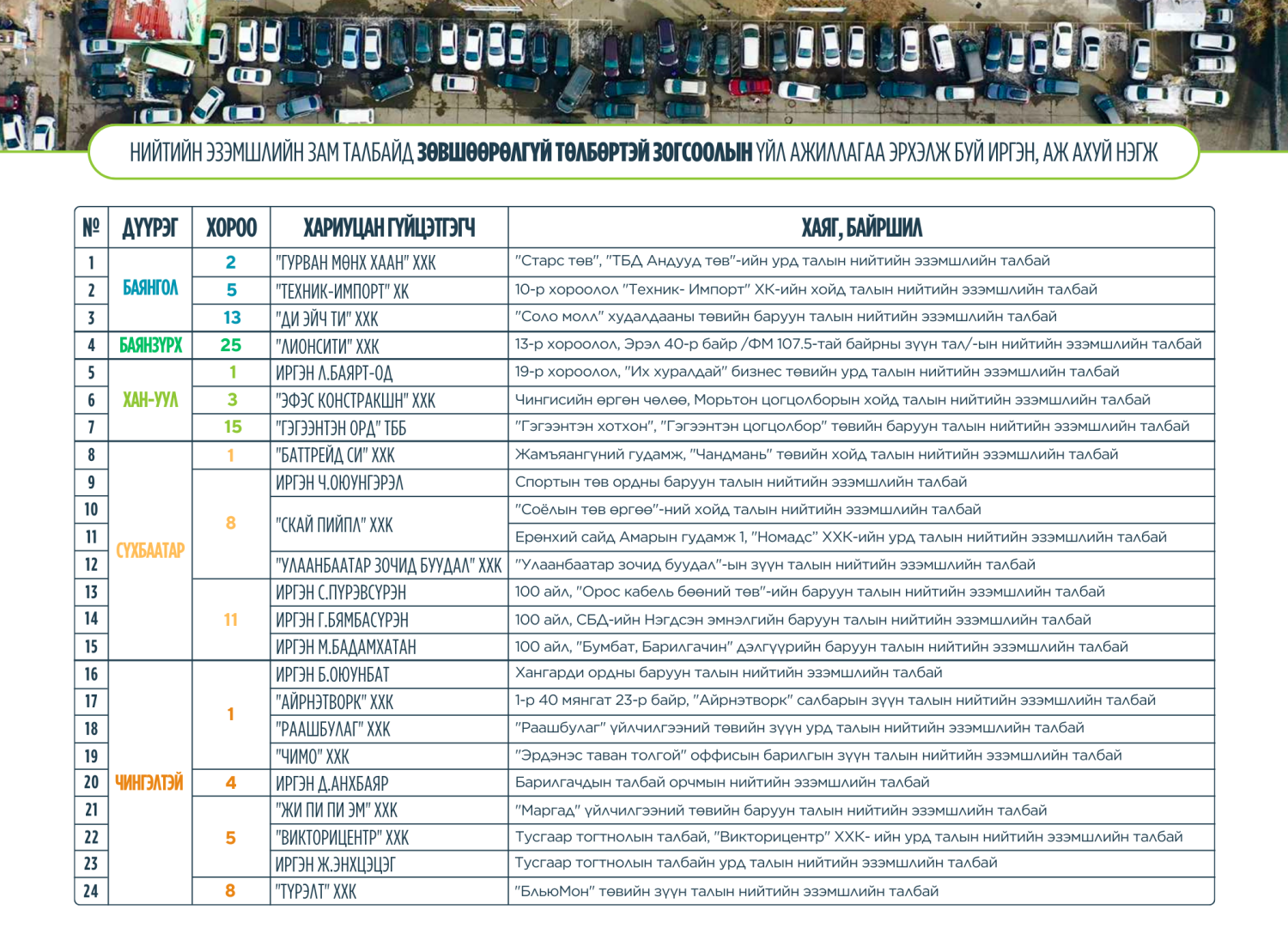 Үүнтэй холбоотойгоор төлбөртэй зогсоолын үйл ажиллагаа зөвшөөрөлгүй явуулж байгаа аж ахуй нэгжүүдийн үйл ажиллагааг зогсооно гэлээ.