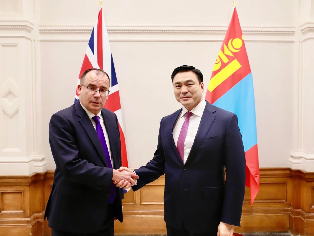 Монгол Улсын Шадар сайд С.Амарсайхан Их Британи, Умард Ирландын Нэгдсэн Хаант улсад хийж буй албан айлчлалынхаа хүрээнд Бизнес, худалдааны яамны экспорт, экспортын санхүүжилтийн агентлаг хариуцсан сайд, парламентын гишүүн Гарет Томастай \2025 оны 2 дугаар сарын 25\ уулзаж, хоёр улсын хамтын ажиллагааны талаар санал солилцлоо.