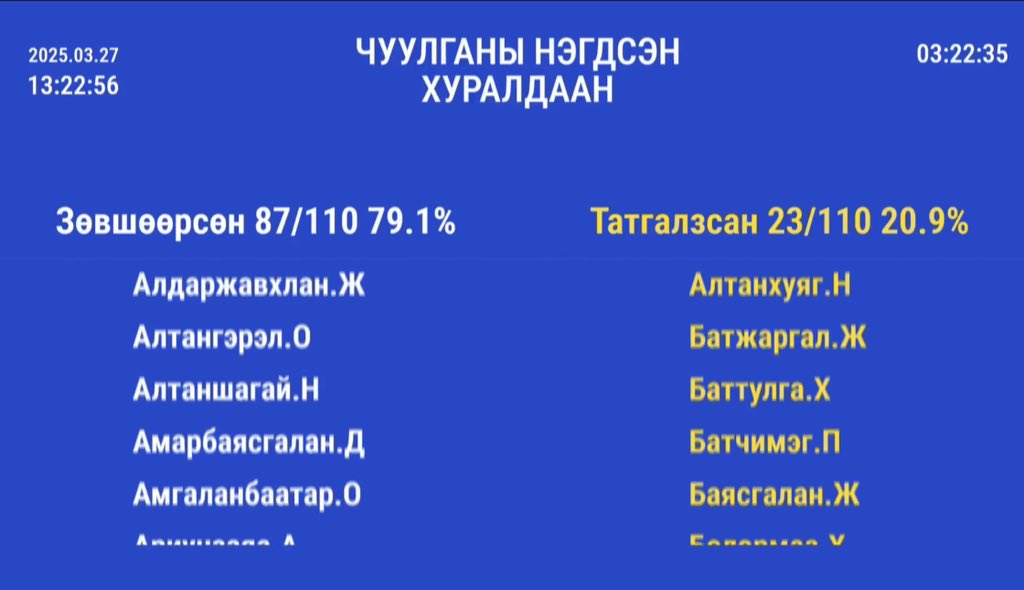 УИХ-ын чуулганы нэгдсэн хуралдаанаар /2025.03.27/ Гашуунсухайт-Ганцмод боомтын хил дамнасан төмөр зам, нүүрсний худалдаа, Тавантолгойн нүүрсний уурхайн хүчин чадлыг нэмэгдүүлэх хамтын ажиллагааны тухай Монгол Улсын Засгийн газар болон БНХАУ-ын Засгийн газар хоорондын хэлэлцээрийг соёрхон баталлаа.