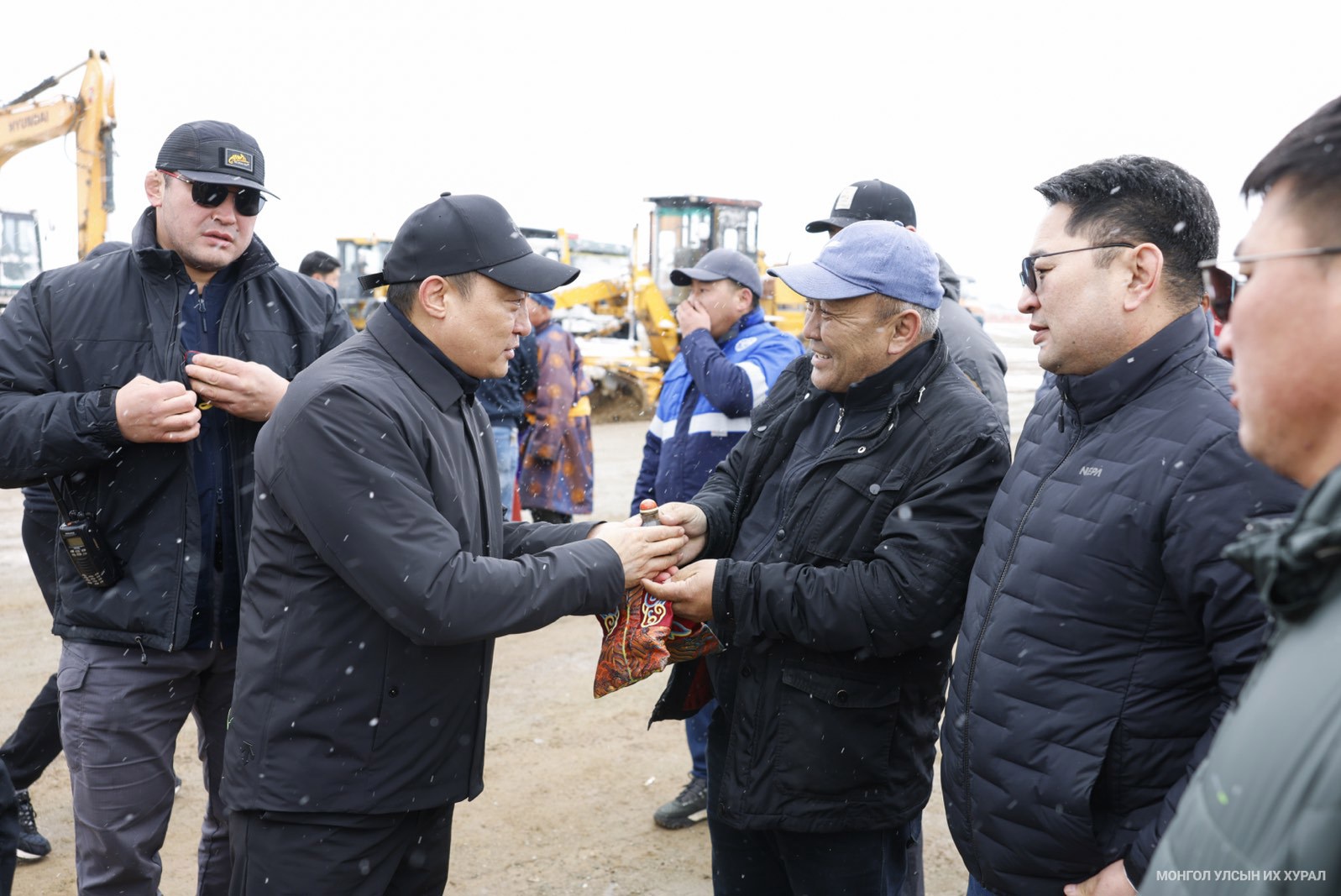 Монгол Улсын Их Хурлын дарга Д.Амарбаясгалан, УИХ-ын гишүүн О.Амгаланбаатар нар (2025.05.04) Говь-Алтай аймгийн Есөнбулаг, Дэлгэр суманд ажиллаж, тус сумдын авто замын барилгын ажлыг эхлүүллээ.