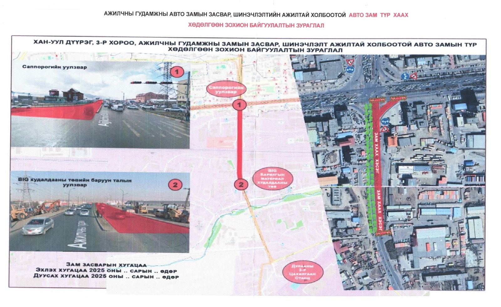 Энэ хугацаанд авто замын засвар, шинэчлэлтийн ажлыг гүйцэтгэх юм байна. Замын хөдөлгөөнийг наймдугаар сарын 14-ний 06:00 цагт нээхээр төлөвлөжээ.