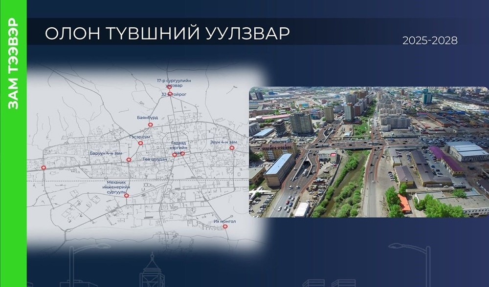 Эдгээр байршилд нийт 9 км авто зам, 4500 метр урт нүхэн гарц болон гүүрэн байгууламж шинээр барина. Ингэснээр хотын гол чиглэлүүдийн авто замын хөдөлгөөн сааталгүй үргэлжлэх нөхцөл бүрдэнэ.