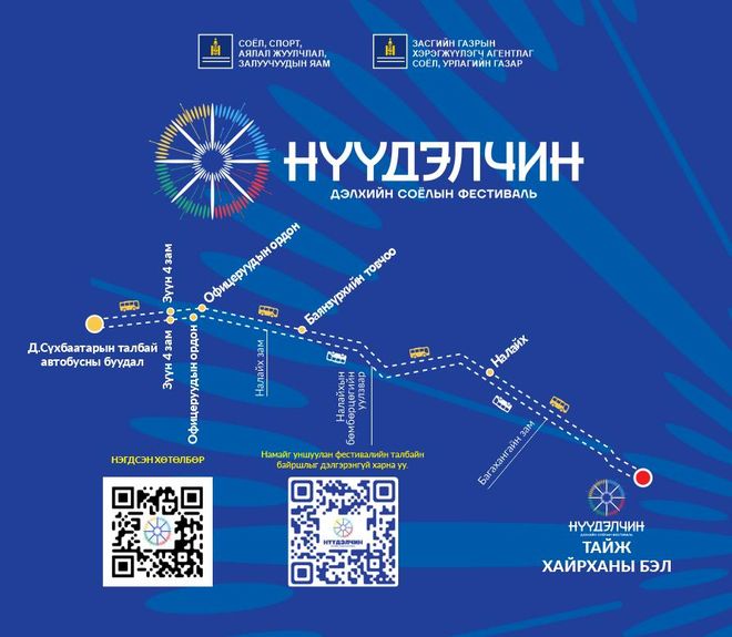 Монгол Улсын соёлын биет бус өвийг түгээн дэлгэрүүлэх зорилготой “Нүүдэлчин” дэлхийн соёлын фестиваль 2025 оны наймдугаар сарын 22, 23, 24-ний өдөр Налайх дүүргийн нутагт байх “Тайж” хайрхан уулын бэлд болно.