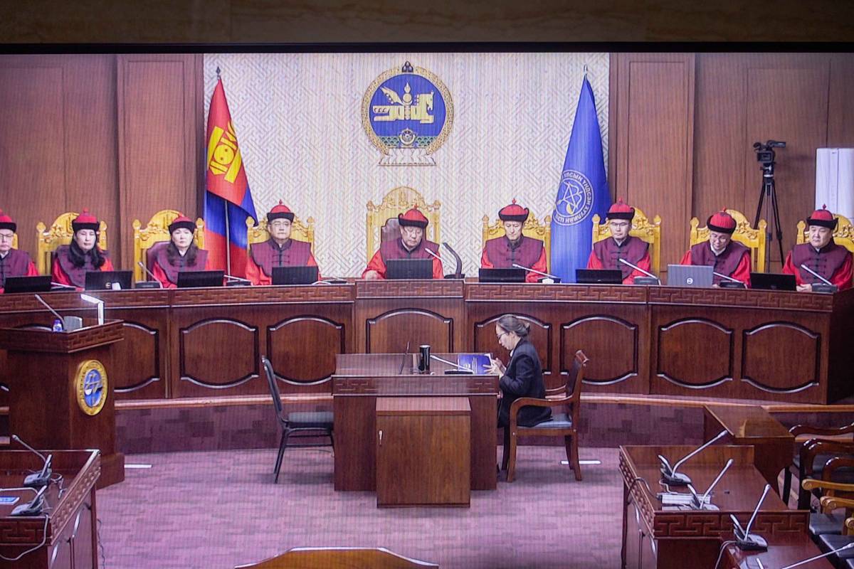 Үндсэн хуулийн цэцийн шийдвэрийн Цэцийн гишүүн О.Мөнхсайхан уншиж танилцуулж байна.