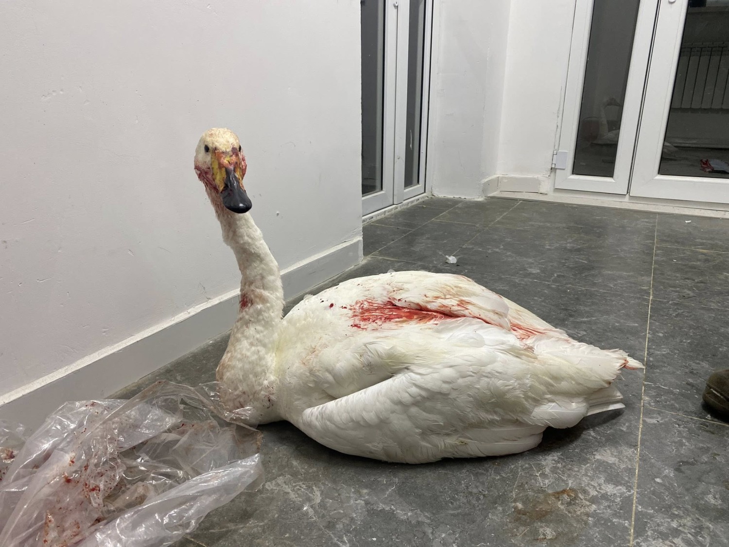 Мэргэжлийн хүмүүстэй холбогдож тэрээр анхны тусламжийг үзүүлж, шувууны шархыг ариутгаж, ус болон хивэг өгчээ. Сүргээсээ хоцорсон залуу хун тэнхэрч, нисэхийг оролдож байгаа аж.