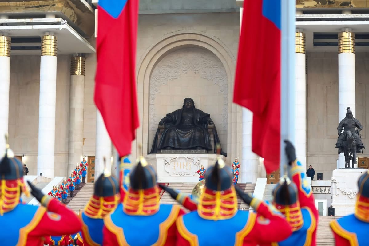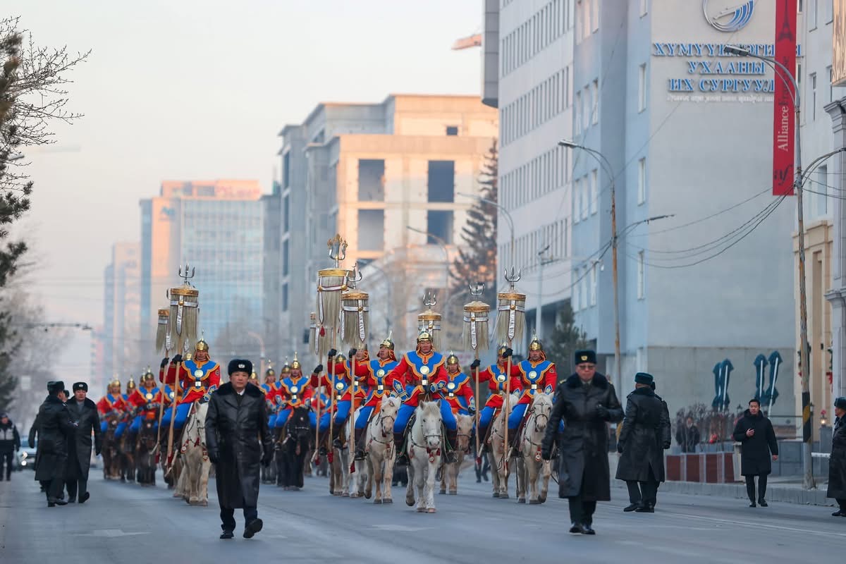 Эзэн Богд Чингис хааны мэндэлсний 863 жилийн ой, “Монгол бахархлын өдөр”-ийг тохиолдуулан жанжин Д.Сүхбаатарын талбайд Төрийн далбааг мандуулж, Төрийн есөн хөлт Их цагаан тугийг нар зөв гороолон цэнгүүллээ.