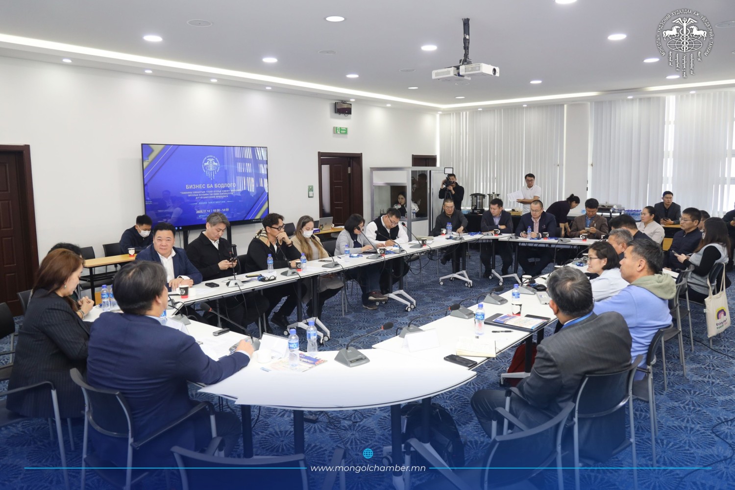 Энэхүү уулзалтаар УИХ-д өргөн баригдаад буй хуулийн төсөлд үйлдвэрлэгчид, худалдаа эрхлэгчдийн байр суурийг тусгах, бизнесийн эрх зүйн орчныг нийгмийн зөвшилцөлтэй бүрдүүлэхэд чиглэсэн юм. Талууд дараах ерөнхий дөрвөн асуудлын хүрээнд санал солилцжээ.