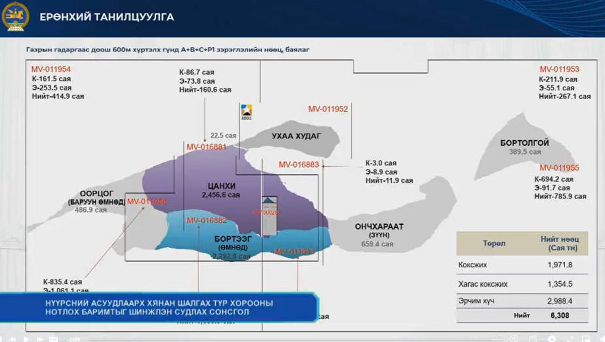 2020 онд ТЭЗҮ нь батлагдсан. 2025 оны арваннэгдүгээр сард ТЭЗҮ -ийг шинэчлэн батлах үүрэг өгсний дагуу “Эрдэнэс Тавантолгой” ХК ордын нэгдсэн ТЭЗҮ-ийн ажлыг шинэчлэх ажлыг хийж байна. 2026 оны эхний улиралд энэ ажлыг дуусгахаар ажиллаж байна. Мөн “Эрдэнэс Тавантолгой” ХК-д сүүлийн гурван жилийн санхүүгийн тайланд олон улсын хараат бус хөндлөнгийн аудит оруулах сонгон шалгаруулалтын үйл ажиллагааг үргэлжлүүлээд хийж байна.
