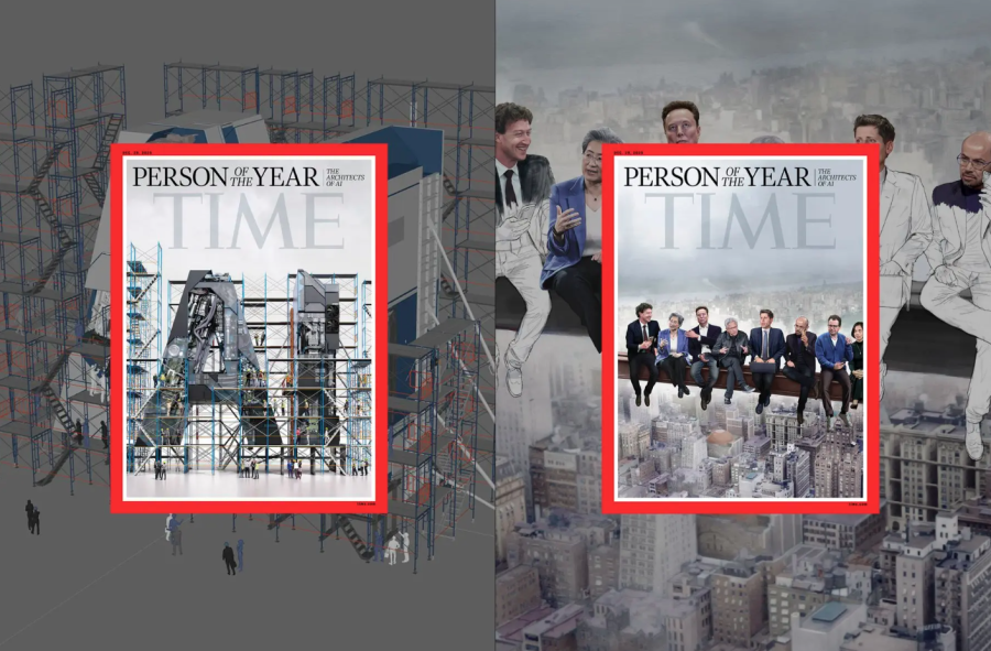 Сэтгүүлийн нүүр зургуудын нэгд барилгын ажилчид баригдаж буй тэнгэр баганадсан барилга дээр үдийн хоол идэж байгааг харуулсан алдарт зургаас сэдэвлэсэн зургийг байршуулжээ. Уг зураг дээр “Meta” компанийн гүйцэтгэх захирал Марк Цукерберг, “AMD” компанийн гүйцэтгэх захирал Лиза Су, “Tesla” компанийн гүйцэтгэх захирал Илон Маск, “Nvidia” компанийн гүйцэтгэх захирал Женсен Хуан, “OpenAI” компанийн гүйцэтгэх захирал Сэм Альтман, “Google”-ийн “DeepMind” охин компанийн захирал Демис Хассабис, “Anthropic” компанийн гүйцэтгэх захирал Дарио Амодей, “World Labs” компанийн хиймэл оюун ухааны анхдагч Фэй-Фэй Ли нарыг дүрсэлсэн байна. Ийнхүү жагсаалтыг эмхэтгэн гаргагчид хиймэл оюун ухаан болон түүний зохион бүтээгчдийг жагсаалтынхаа эхэнд оруулсан бол Пап лам XIV Лео, Нью-Йорк хотын даргаар сонгогдсон Зохран Мамдани нар шалгарах өндөр магадлалтай хүмүүст тооцогдож байлаа.
