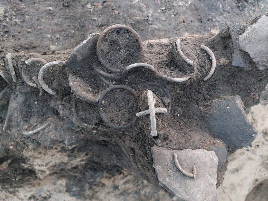 Мөн эдгээр эд өлгийн зүйлсийн дунд өндөр эрх мэдэлтний том энколпион загалмай (давхар загалмай), 9 хүрэл, 8 гантиг зүүлттэй загалмай, хуурамч мөхлөгөөр чимэглэсэн 18 алмазан хэлбэртэй горхи, 5 мөнгөн сүмийн цагираг, гурван шонхор хэлбэртэй хар тугалган шигтгээ, бамбай хэлбэртэй мөнгөн тэмдэгт бөгж, хүрэл бороохойн толгой, “Дрогочин маяг”-ийн (Өмнөд Белорус) нарны бэлгэдэл бүхий тамганы олон тооны хэлтэрхий олджээ.