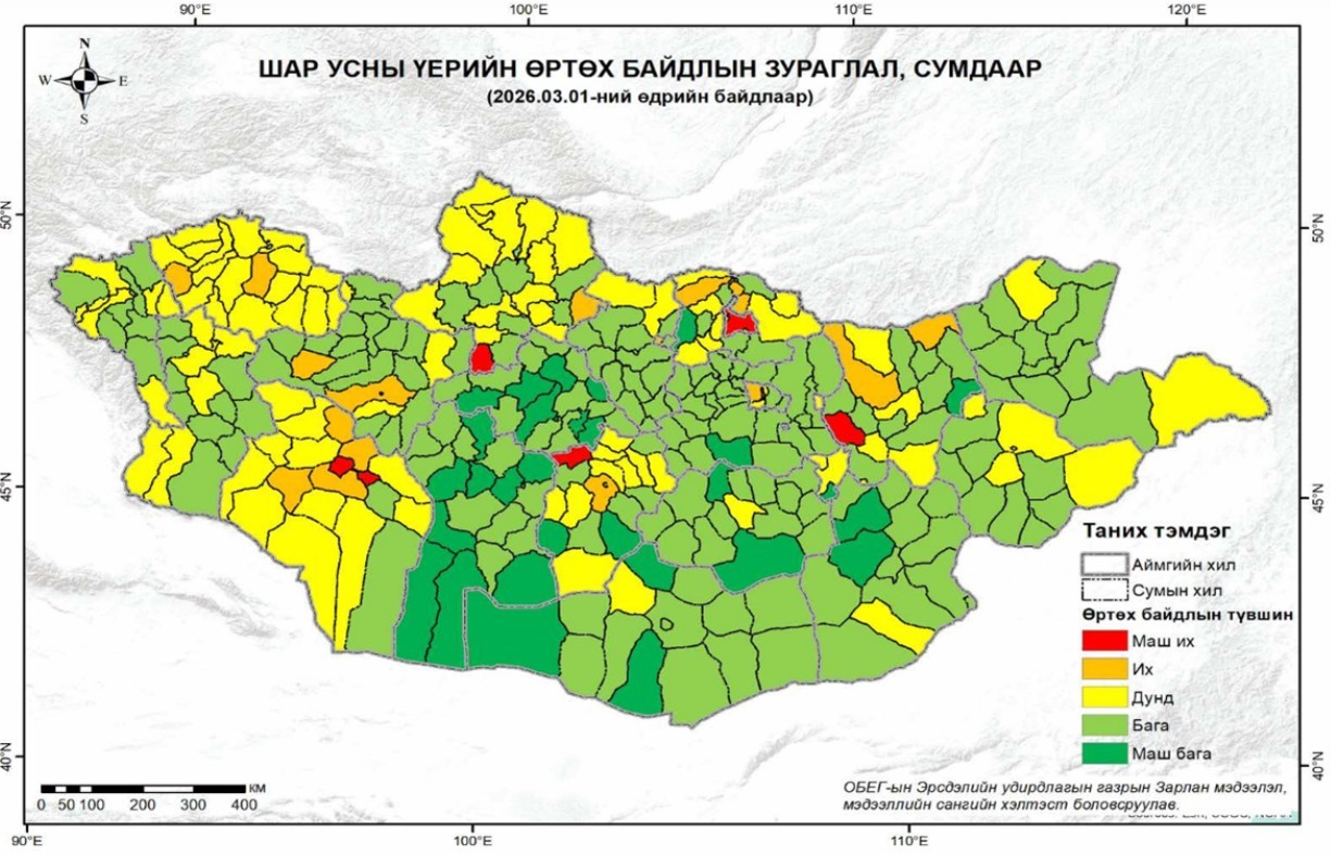 Монгол Улсын Шадар сайдын баталсан “Гамшгийн эрсдэлийн ерөнхий үнэлгээ хийх нэгдсэн удирдамж”-ийн дагуу 2026 оны хаврын шар усны үерийн аюул, өртөх байдал, эмзэг байдлын ерөнхий үнэлгээ хийлээ.
